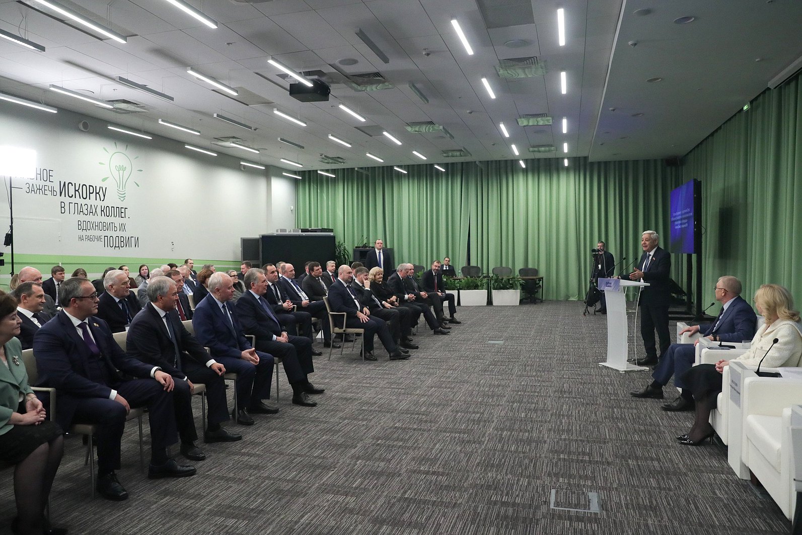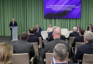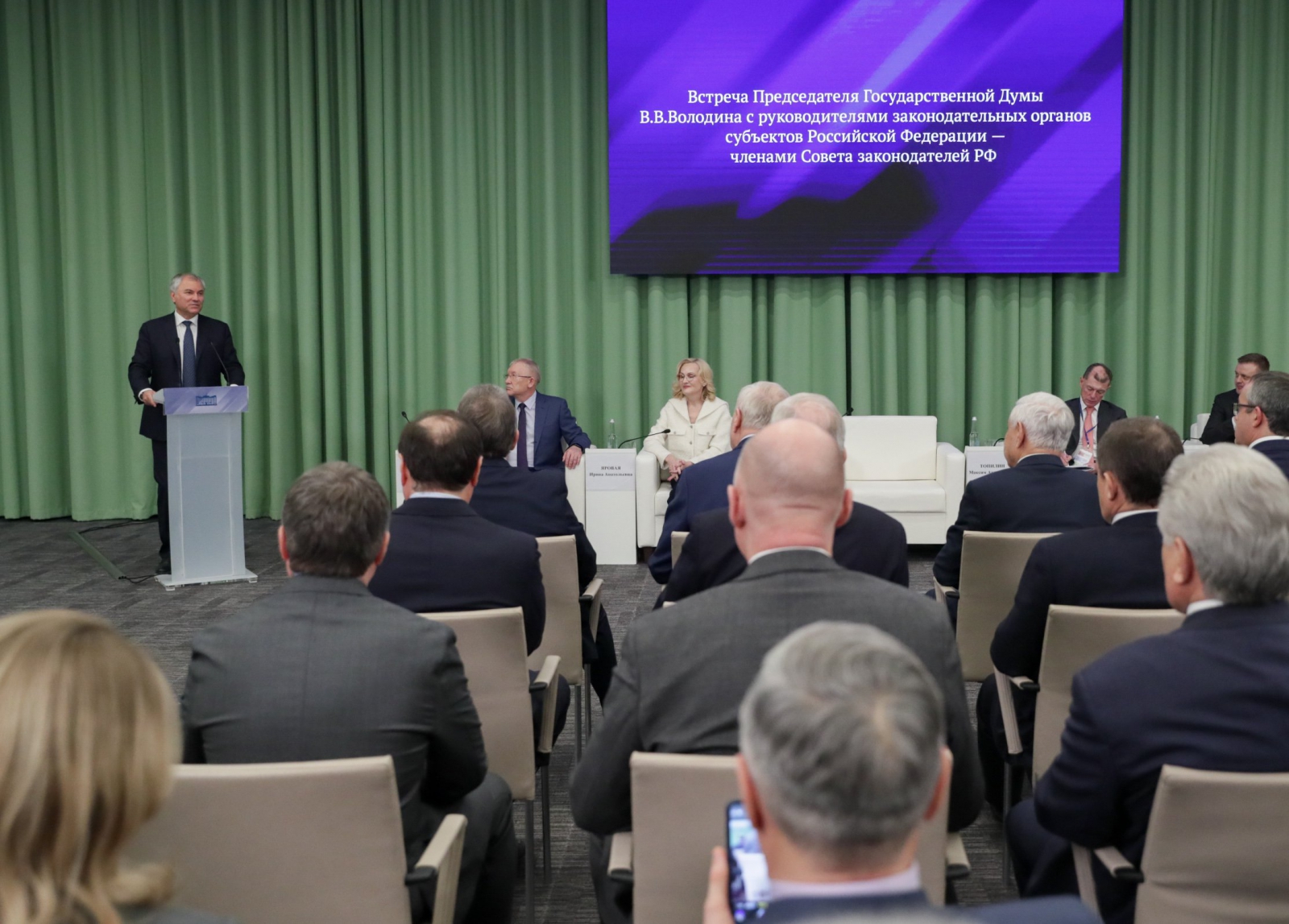В рамках программы работы Совета законодателей также состоялась встреча председателя Государственной Думы Вячеслава Володина с членами Совета законодателей.