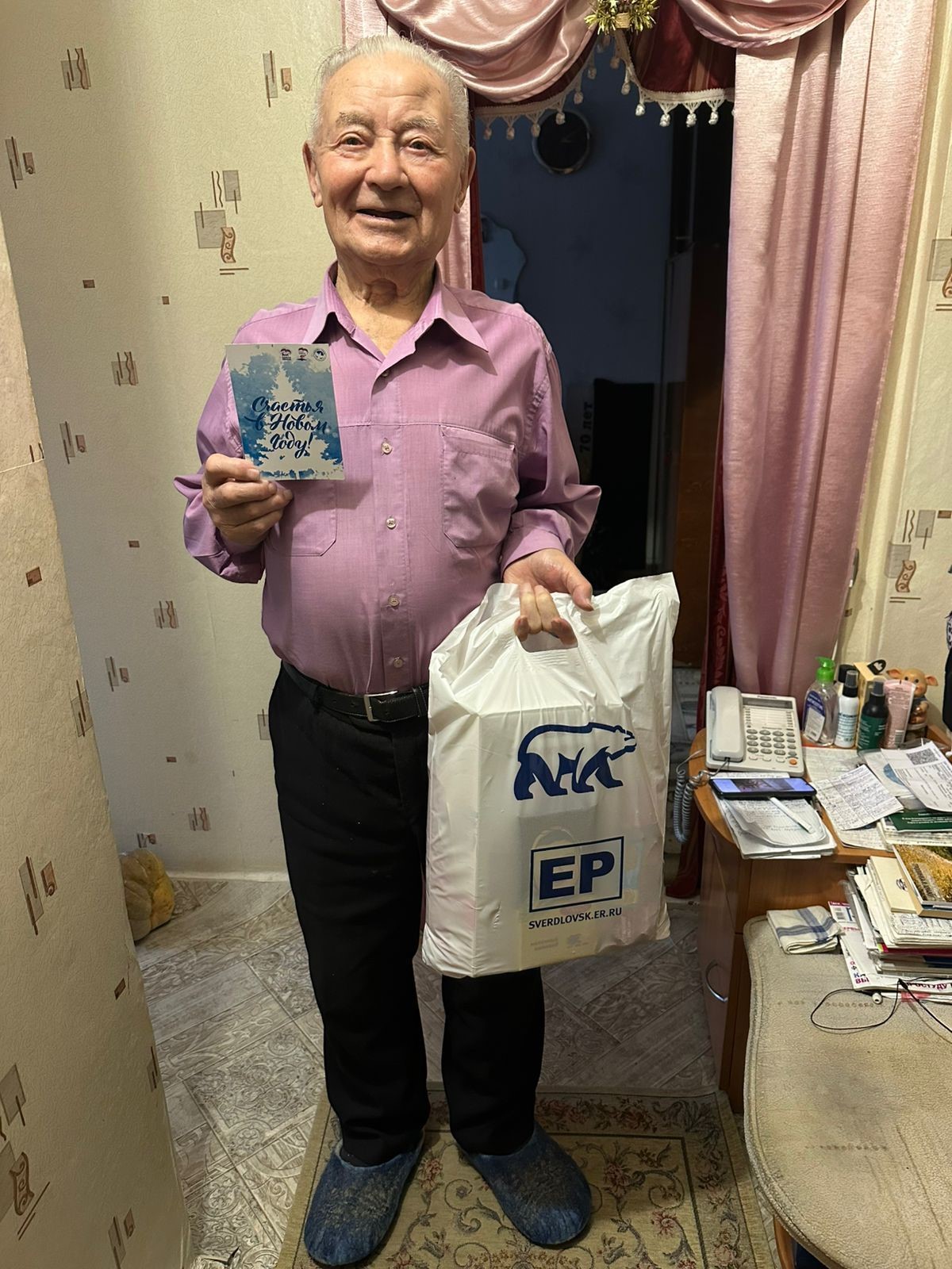 Депутат Заксобрания поздравила заслуженных земляков с наступающим Новым годом от имени партии «Единая Россия», которая несколько лет назад инициировала добрую акцию «С Новым годом, ветеран!». К подаркам партии и Заксобрания Анна Соломеина как директор по персоналу Уральского алюминиевого завода приобщила также новогодние гостинцы компании РУСАЛ.