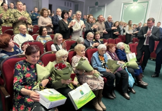 В февральский день представители этого героического поколения находились в зале. Каждому из них – цветы, подарки и, конечно, главная награда – юбилейная медаль «80 лет Победы в Великой Отечественной войне 1941-1945». Каждого из этих Героев зал приветствовал стоя.