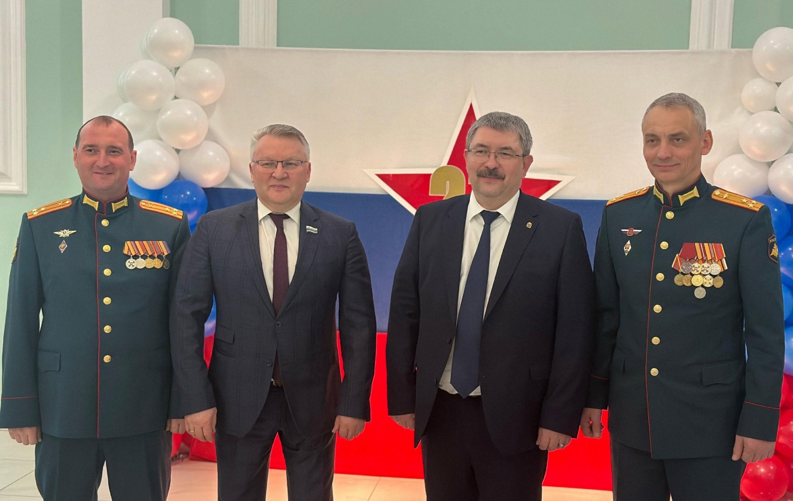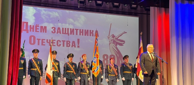Праздничное мероприятие прошло в Центре культуры «Современник». В зале – военнослужащие частей гарнизона, ветераны Великой отечественной войны, труженики тыла, сотрудники оборонного предприятия «Электрохимприбор», спасатели МЧС, медики, юнармейцы, члены городских общественных организаций. На большом экране – слова, посвящённые защитникам всех поколений, на сцене – развёрнутые боевые полковые знамёна. А ещё искренние поздравления в адрес тех, кто приближал Великую Победу в далёкие сороковые, кто прошёл Афган, Чечню, кто сегодня выполняет свой воинский долг в рамках специальной военной операции.