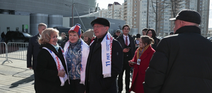 В Екатеринбурге на территории стадиона «Екатеринбург Арена» состоялся митинг-концерт, приуроченный к 11-й годовщине со дня воссоединения Крыма и Севастополя с Россией.