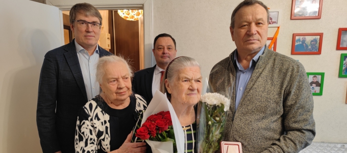 Нина Даниловна получила юбилейную медаль, подарки и цветы.