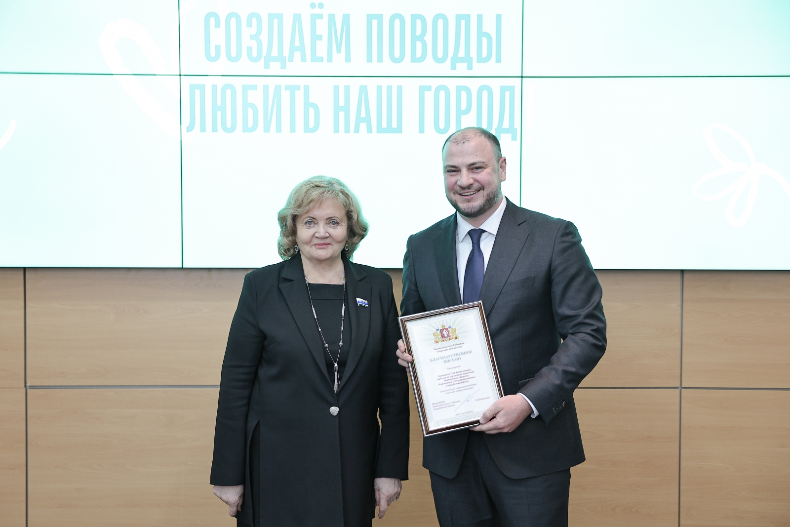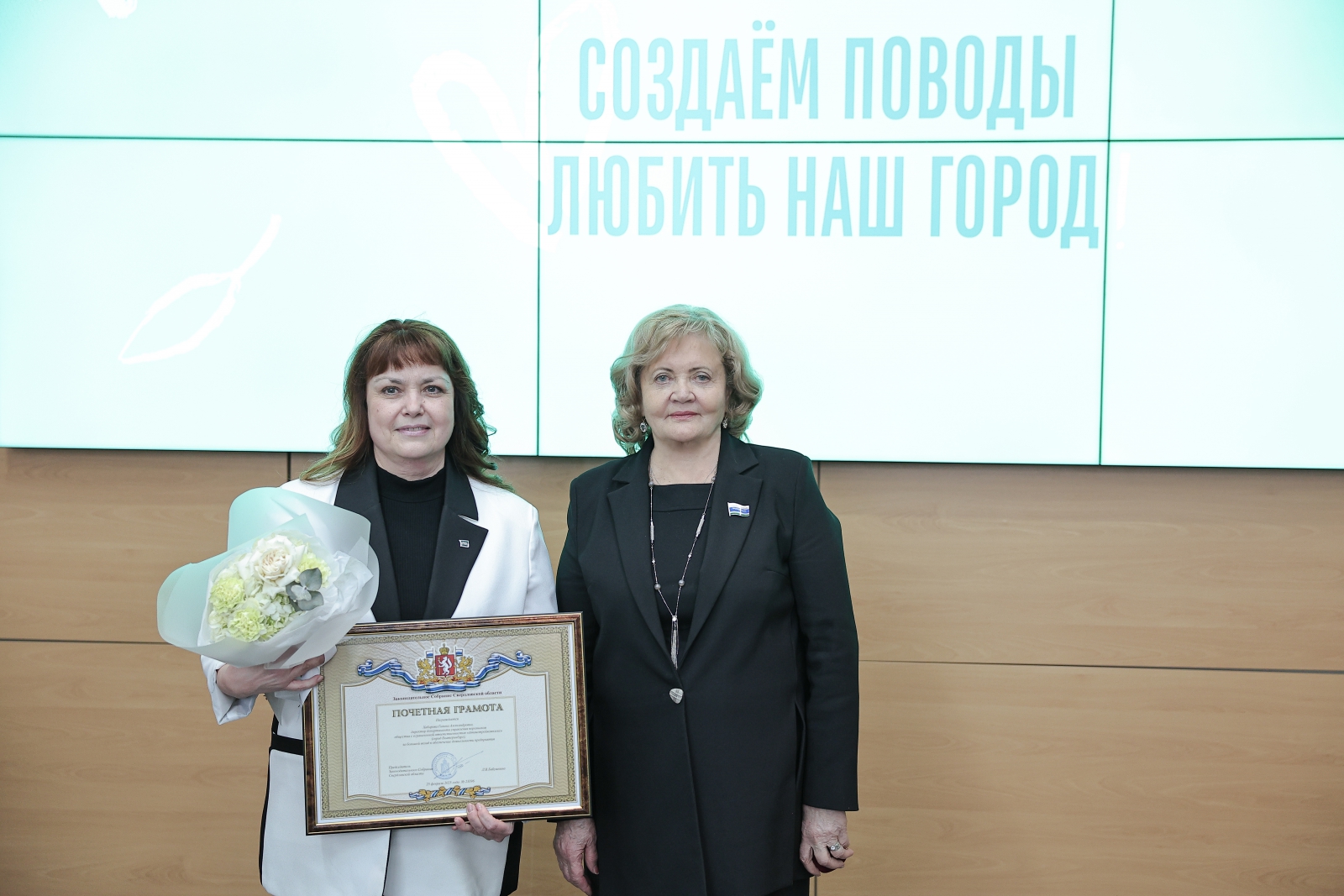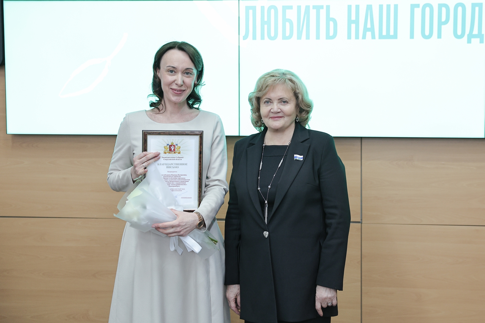 За значительный вклад в развитие строительного комплекса региона Людмила Бабушкина наградила почётным золотым знаком Законодательного Собрания Свердловской области основателя компании Валерия Ананьева, а также вручила восьми сотрудникам компании почётные грамоты и благодарственные письма Законодательного Собрания Свердловской области.