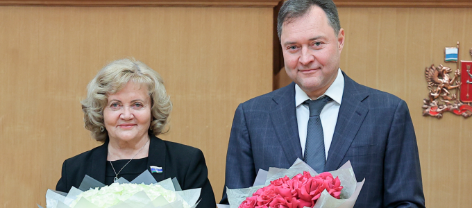 Председатель Законодательного Собрания Свердловской области Людмила Бабушкина и заместитель председателя комитета по социальной политике парламента Александр Серебренников отмечают юбилейную дату – 25 лет непрерывного статуса народного избранника.
