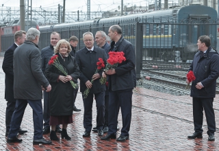 Перед началом встречи участники заседания возложили цветы к Мемориалу железнодорожникам, погибшим во время Великой Отечественной войны, который находится рядом с МОЦ «Депо» на станции Екатеринбург – Пассажирский.