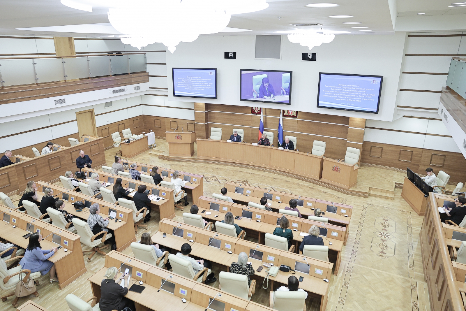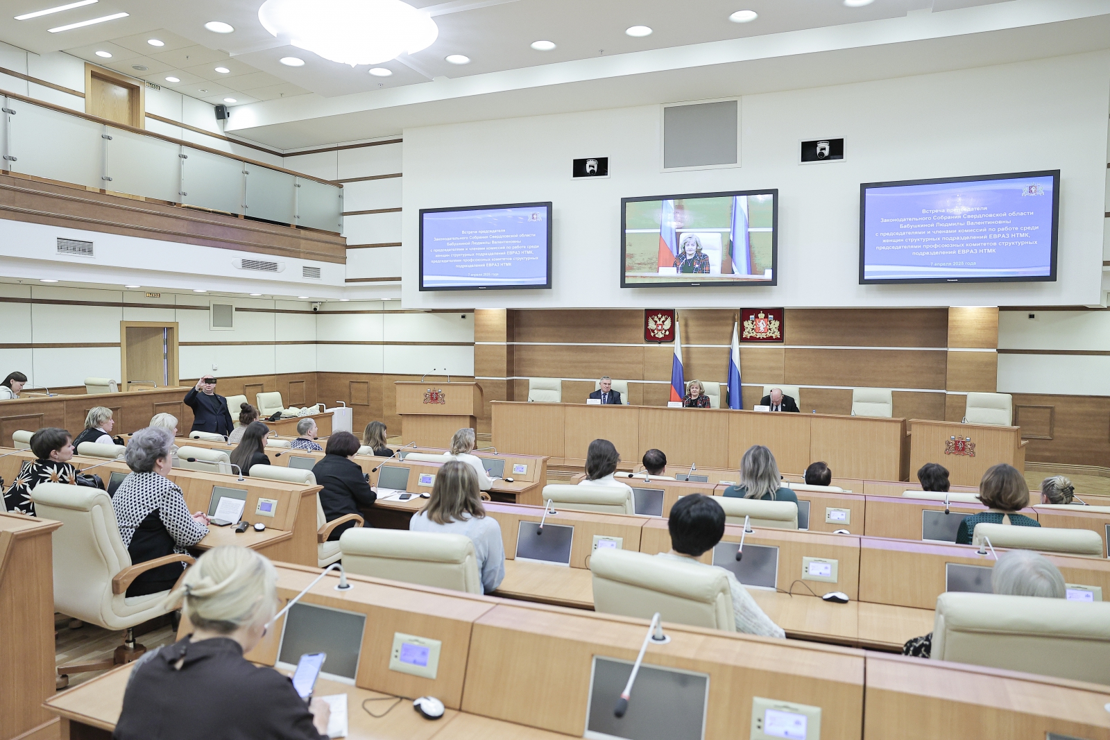 На площадке Законодательного Собрания состоялась встреча Людмилы Бабушкиной с председателями и членами комиссий по работе среди женщин, председателями профсоюзных комитетов структурных подразделений Нижнетагильского металлургического комбината.