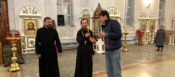 В пасхальное воскресенье Благодатный огонь был доставлен из Иерусалима в Екатеринбург.