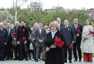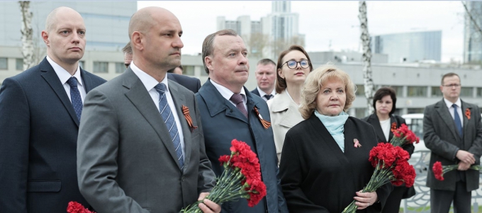 Председатель Законодательного Собрания Свердловской области Людмила Бабушкина возложила цветы к стеле «Город трудовой доблести» в преддверии Дня Победы в Екатеринбурге. Участие в торжественной церемонии приняли полномочный представитель Президента РФ в УрФО Артём Жога, глава Екатеринбурга Алексей Орлов, а также депутаты областного парламента.