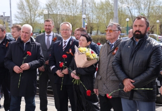 В завершение церемонии участники торжества возложили цветы к мемориалу и почтили память погибших героев Великой Отечественной войны.