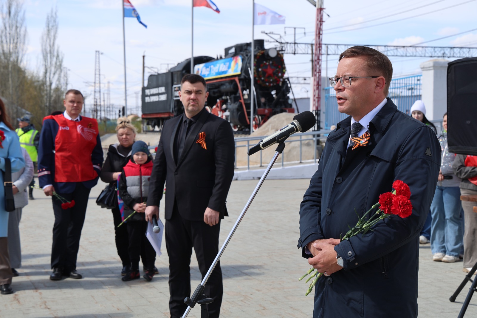 Поздравить каменцев со столь знаменательным событием пришли и другие почётные гости: первый заместитель губернатора Свердловской области Алексей Шмыков, председатель совета ветеранов Свердловской железной дороги Леонид Соколов, глава Каменск-Уральского городского округа Алексей Герасимов.