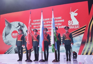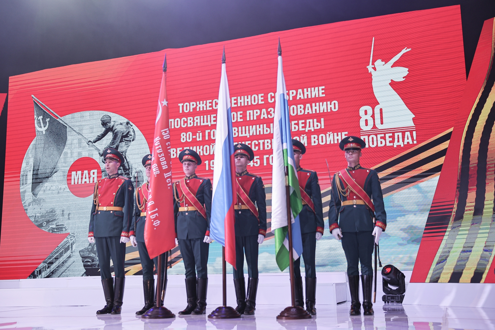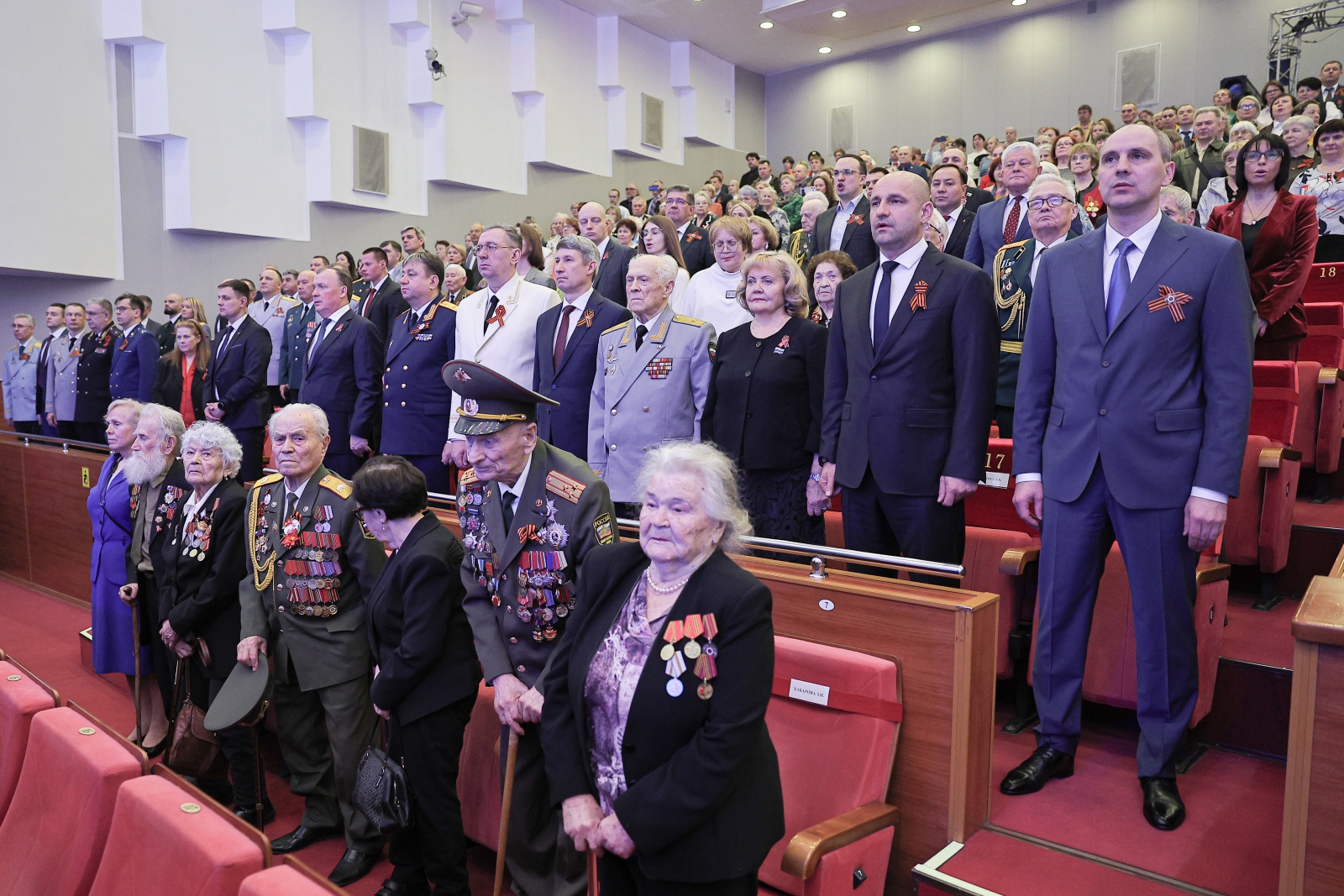 Торжественное собрание завершилось праздничным концертом с исполнением народного гимна 9 мая – песни композитора Давида Тухманова и поэта Владимира Харитонова «День Победы».