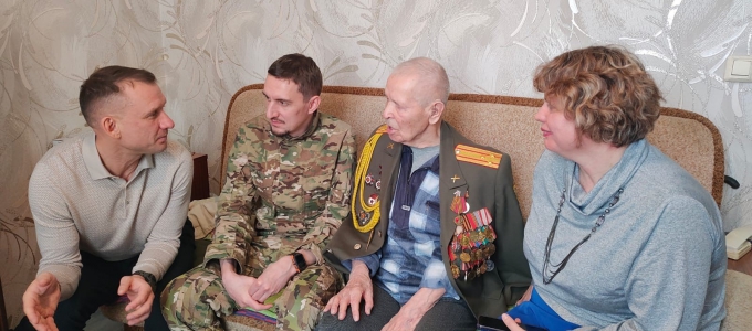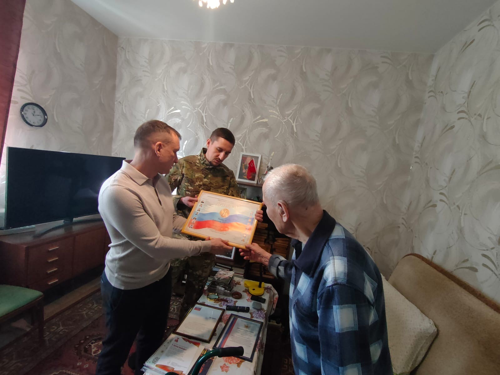Накануне 80-летия Победы заместитель председателя комитета Законодательного Собрания по региональной политике и местному самоуправлению Александр Каптюг вместе с ветераном СВО, участником президентской программы «Время Героев» Анатолием Созоновым посетили ветерана Великой Отечественной войны – Александра Ивановича Пермякова, чтобы лично выразить ему слова благодарности за его вклад в Победу и пожелать крепкого здоровья.