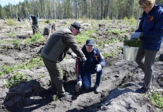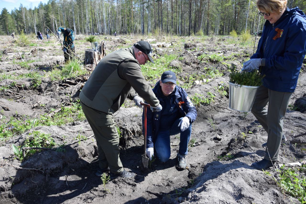 К акции по высадке саженцев сибирской ели присоединились более 450 человек – жители области, депутаты Законодательного Собрания Свердловской области, члены областного правительства. Акция «Сад Памяти» не только патриотическая, но и экологическая. Она проходит в рамках нацпроекта «Экологическое благополучие».