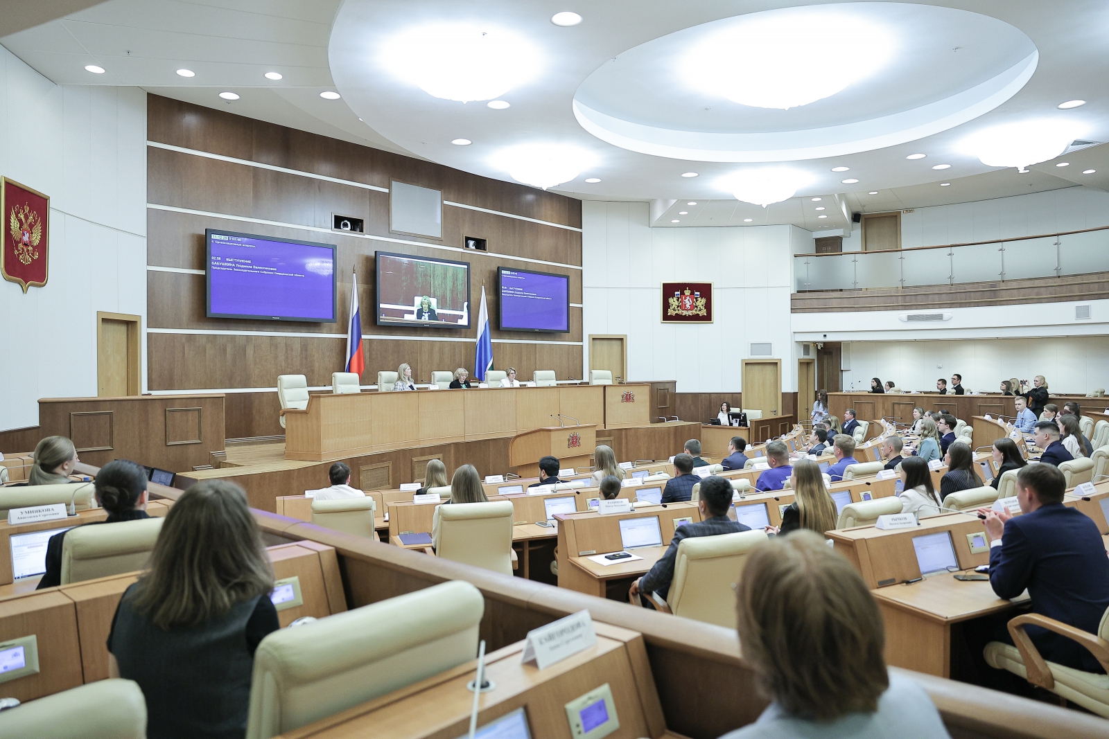 Председатель Законодательного Собрания Свердловской области Людмила Бабушкина поприветствовала молодых коллег на первом заседании нового – седьмого созыва регионального молодёжного парламента.
