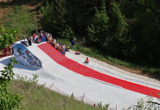 На территории горнолыжного комплекса «Богатырек» состоялось торжественное открытие трассы, которая позволяет каменцам круглый год кататься на тюбингах, сноубордах и скейтбордах.