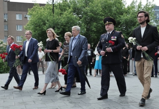 Глава Свердловской области Денис Паслер и председатель Законодательного Собрания Свердловской области Людмила Бабушкина 12 июня возложили цветы к памятнику первому Президенту РФ Борису Ельцину.
