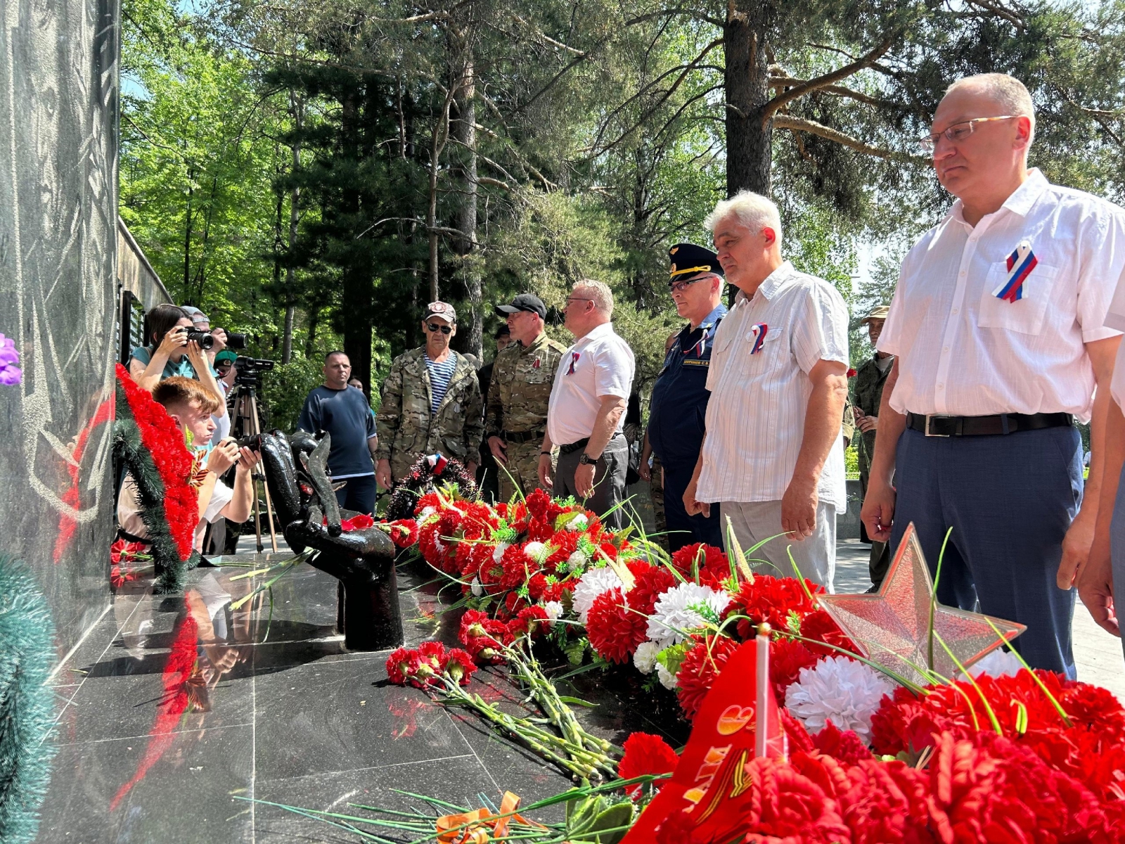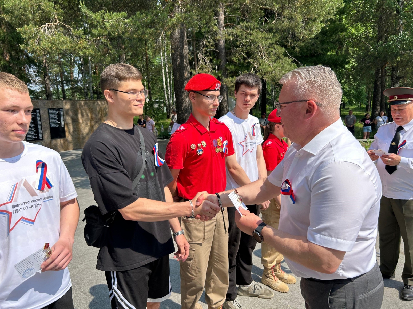 В этот же день Сергей Никонов прибыл в Качканар, где вместе с его жителями возложил цветы к Мемориальному комплексу воинам-качканарцам, погибшим при исполнении воинской службы, икмемориальным доскам в память о Героях, погибших в ходе специальной военной операции. Также вместе с главой Качканара Андреем Ярославцевым парламентарий вручил паспорта новому поколению патриотов, знаки ВСК – юнармейцам и воспитанникам военно-патриотических клубов, стал участником яркого флешмоба и многоголосного исполнения гимна России, поприветствовал участников Первого Кубка Защитников Отечества среди ветеранов СВО из Лесного, Нижней Туры и Качканара.