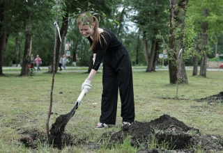 Председатель Законодательного Собрания Свердловской области Людмила Бабушкина в ходе рабочего визита в Богданович 20 июня вместе с выпускниками-отличниками и победителями олимпиадвысадила деревья на «Аллее медалистов».