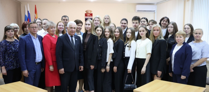 В администрации Каменска-Уральского собралась интеллектуальная элита города: шесть медалистов 2025 года из школы №34 и Ольга Лукьянова, финалистка телепроекта «Умники и умницы» на «Первом канале».