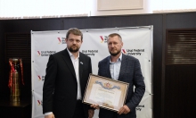 От имени председателя Законодательного Собрания Людмилы Бабушкиной Станислав Блохин поздравил спортсменов с победой и вручил куратору команды Антону Досманову почётную грамоту парламента.