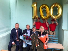В честь векового юбилея под окнами его дома состоялся концерт военного оркестра. Музыканты исполнили главные военные композиции.