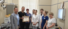 Он вручил почётные грамоты Законодательного Собрания Свердловской области за вклад в оказание медицинской помощи населению Свердловской области заслуженным сотрудникам, в числе которых Максим Турунцев, кандидат медицинских наук и врач-оториноларинголог.