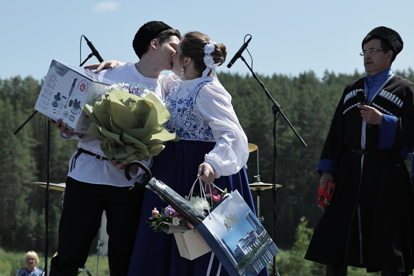 Сегодня же на празднике была создана новая семья в Богдановичском муниципальном округе – свой брак зарегистрировали Георгий Поварь и Дарья Косоурова. Свадебная церемония прошла в казачьих традициях.
