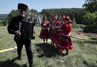 Отдельного внимания заслуживает место проведения народных гуляний – живописная деревня Кашина. Здесь, на кашинской земле 3 июля (16 июля по новому стилю) 1911 года появилась крепкая семья известного уральского сказителя Павла Бажова и Валентины Иваницкой. В честь их венчания литературное сообщество «Серебряная Елань» установило памятник «Камень Двух Колец», близ которого и проводится народное гуляние «Кашинский хоровод».