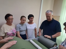 Парламентарий помогает мастерицам расходными материалами. Недавно артель старателей «Нейва» из Невьянска передала волонтёрам станок для нарезки ткани на ленты. Благодаря помощи депутата и освоению новой технологии было подготовлено 23 сети за 2 недели, которые женщины отправили своему земляку Олегу П. на линию фронта. Депутат протестировал эксклюзивную технику, которая действительно облегчает труд и повышает качество изделий.