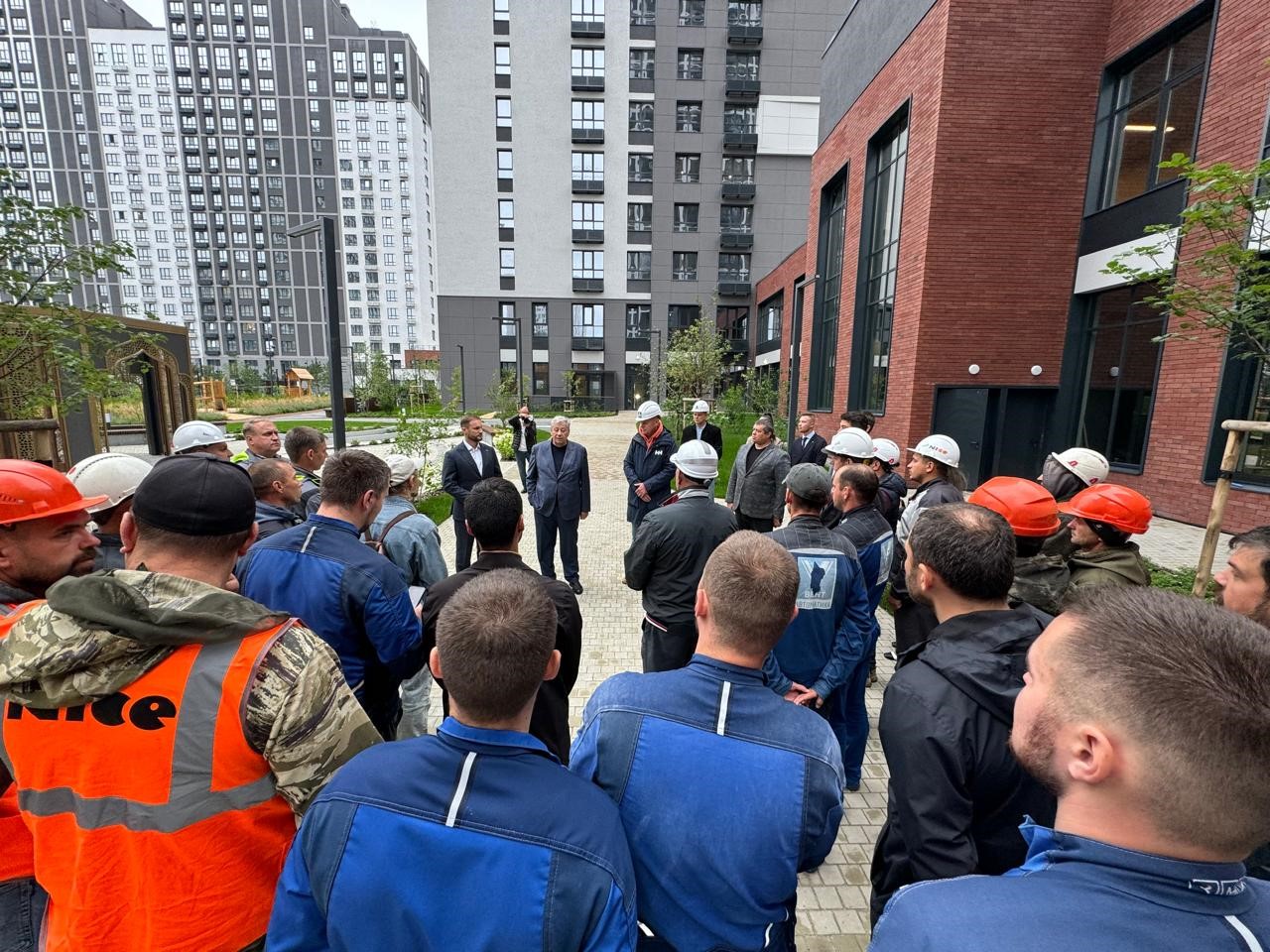 Аркадий Чернецкий пообщался со строителями на этой площадке и встретился с коллективом в офисе. Он рассказал о федеральных и региональных мерах поддержки строительного комплекса и поздравил коллектив компании с приближающимся Днём строителя.