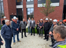 Аркадий Чернецкий пообщался со строителями на этой площадке и встретился с коллективом в офисе. Он рассказал о федеральных и региональных мерах поддержки строительного комплекса и поздравил коллектив компании с приближающимся Днём строителя.