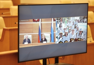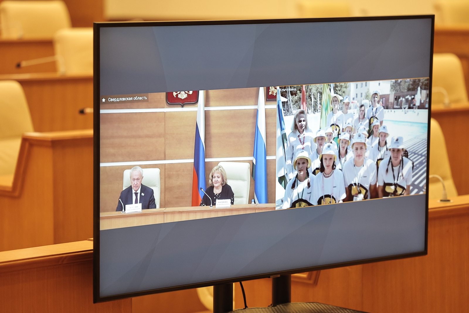 Председатель Законодательного Собрания Свердловской области Людмила Бабушкина и председатель комитета по социальной политике Вячеслав Погудин в режиме видеоконференцсвязи расспросили юных уральцев о том, как проходит их отдых на Черноморском побережье.