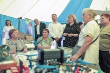 В выходные она побывала на праздновании Дня города в Талице, где волонтёрские и ветеранские организации собрали экспозицию вещей, которые делают своими руками для отправки на передовую: одежда, сети, окопные свечи, спички длительного горения и многое другое.