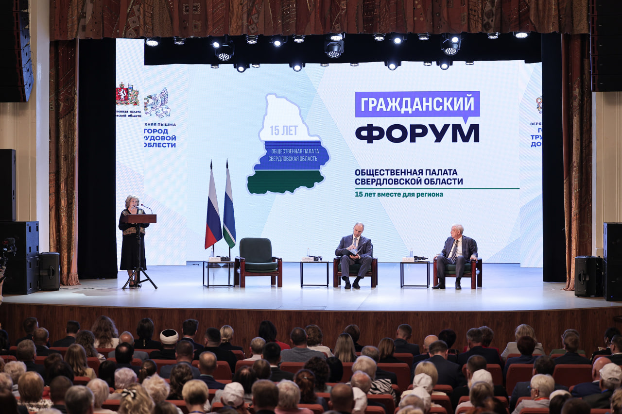 Врио губернатора Свердловской области Денис Паслер и председатель Законодательного Собрания Людмила Бабушкина на гражданском форуме «Общественная палата Свердловской области: пятнадцать лет вместе для региона» отметили большой вклад общественных организаций в развитие Среднего Урала.