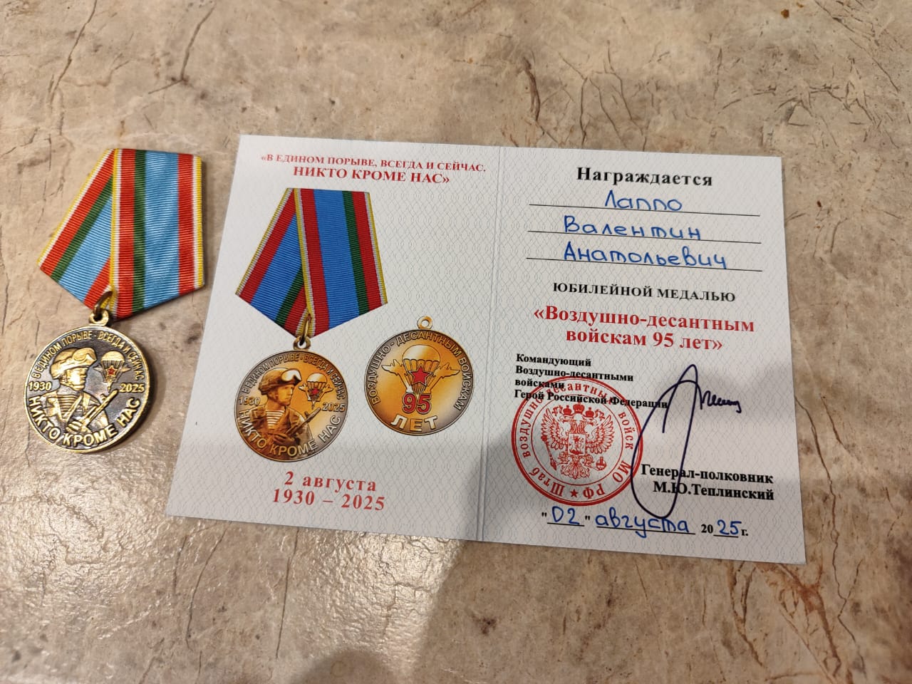 «Для меня эта встреча стала особенно значимой, так как я получил из их рук представителей руководства этой организации юбилейную медаль «Воздушно-десантным войскам 95 лет». Эта честь – огромная ответственность и знак того, что мы делаем общее дело»,– отметил Валентин Лаппо.