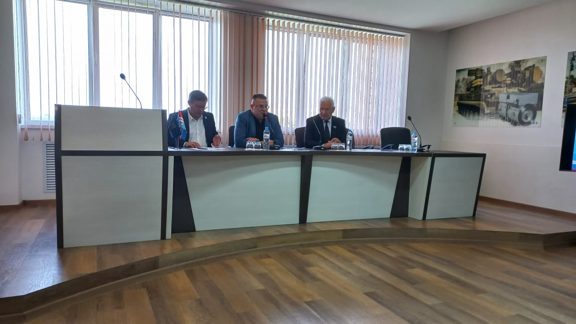 Заместитель председателя Законодательного Собрания Свердловской области Виктор Якимов вместе с главой Каменск-Уральского городского округа Алексеем Герасимовым встретились с коллективом завода «Уралэлектромаш».