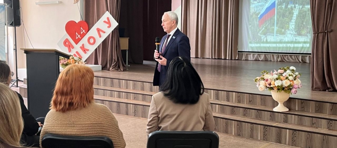 В Нижнем Тагиле Вячеслав Погудин встретился с педагогическим коллективом школы № 44 им. народного учителя Г.Д.Лавровой. Во встрече приняли участие директор школы Наталья Самарджева и представитель управления образования города Татьяна Басова.