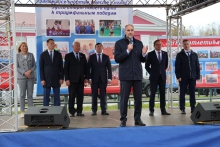 Заместитель председателя Законодательного Собрания Свердловской области Виктор Якимов и заместитель председателя комитета по бюджету, финансам и налогам Анна Соломеина приняли участие в торжественной церемонии открытия стадиона «Металлист» в посёлке имени Чкалова.