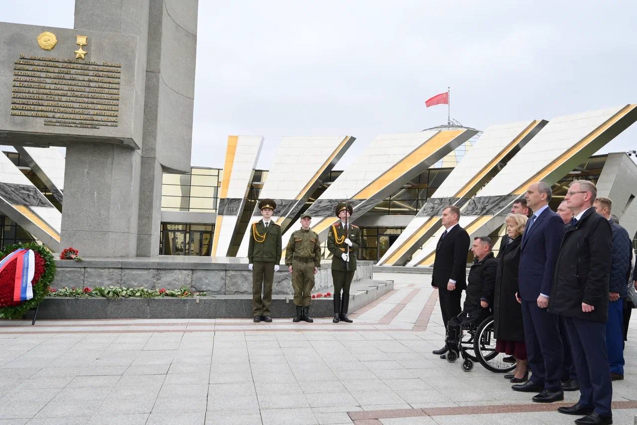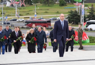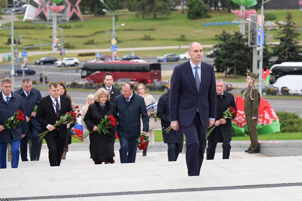 Церемония возложения венков и цветов открыла первый день работы делегации Свердловской области во главе с губернатором Денисом Паслером в Минске, где сейчас проходит международная промышленная выставка «ИННОПРОМ. Беларусь».