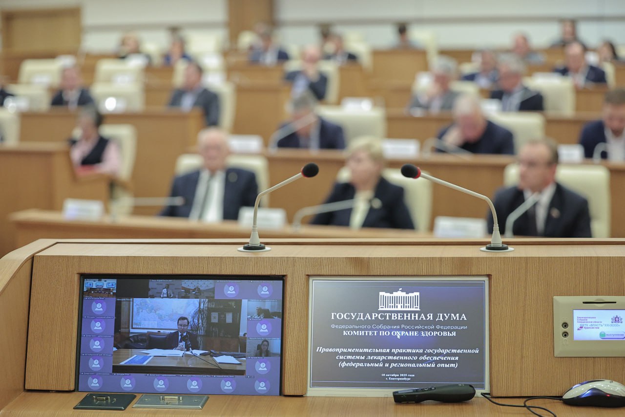 На площадке Законодательного Собрания Свердловской области состоялось выездное заседание круглого стола комитета Государственной Думы по охране здоровья, где рассматривался федеральный и региональный опыт правоприменительной практики государственной системы лекарственного обеспечения.