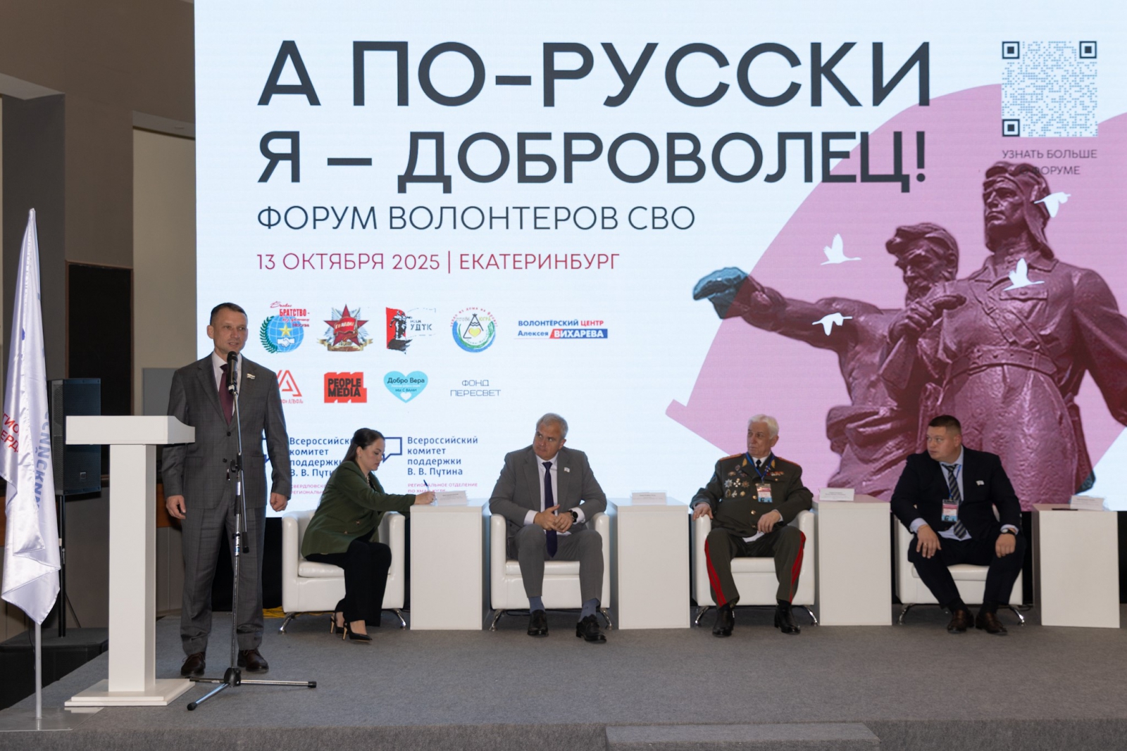 Депутат Законодательного Собрания Свердловской области Александр Каптюг выступил на Форуме волонтёров СВО «А по-русски Я — Доброволец!».