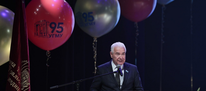 Заместитель председателя Законодательного Собрания Свердловской области Виктор Якимов поздравил сотрудников и ветеранов вуза с 95-летием и вручил заслуженным преподавателям благодарственные письма за вклад в развитие здравоохранения. Он отметил, что сотрудники и студенты вуза заложили основы уникальных научных направлений в хирургии, травматологии, анестезиологии и других медицинских специальностей. Сегодня университет заслуженно входит в 100 лучших университетов России.