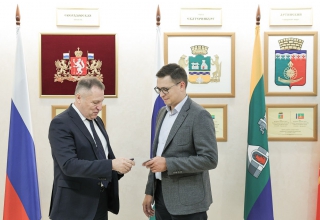 По поручению председателя Законодательного Собрания Людмилы Бабушкиной депутат Вячеслав Вегнер вручил Почётный знак парламента «За заслуги в волонтёрской деятельности» Михаилу Пьянникову и Никите Филимошкину - разработчикам беспилотных летательных аппаратов.