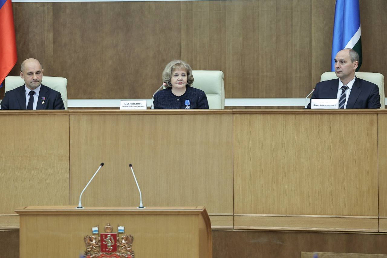 «Позвольте мне выразить слова благодарности вам, Артём Владимирович, губернатору Свердловской области Денису Владимировичу Паслеру и Президенту нашей страны Владимиру Владимировичу Путину за оценку моего труда на посту председателя Законодательного Собрания. Благодаря совместной работе депутатов Законодательного Собрания мы достигли результатов, позволяющих гордиться нашим законодательством. Президент России ставит перед нами серьёзные задачи в законотворческой деятельности по реализации стратегии национального развития и национальных проектов. И только во взаимодействии с исполнительными органами власти, с вниманием к нуждам и проблемам наших избирателей мы можем эффективно решать эти задачи», – сказала Людмила Бабушкина.
