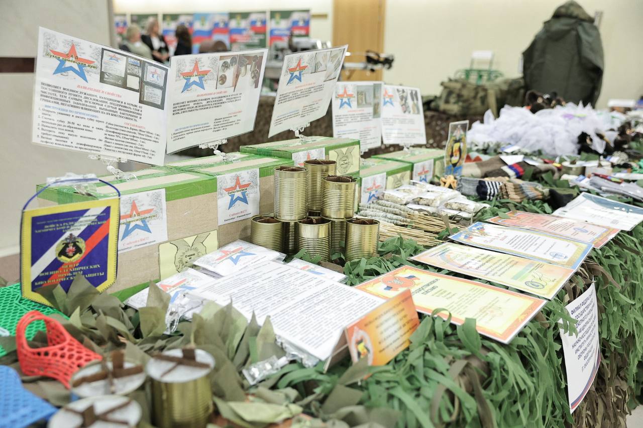 Около пятисот изделий, представленных на выставке, изготовлены руками неравнодушных жителей области. Экспонаты собирали представительницы отделений «Женского движения Единой России» из Екатеринбурга, Ирбита, Заречного, Сухого Лога, Таборинского и Байкаловского муниципальных районов, Пышминского и Асбестовского муниципальных округов. В создании экспозиции также приняли участие волонтёрские организации Свердловской области. Среди них волонтёры Талицкого муниципального округа, приход при Храме Святого преподобного Серафима Саровского из Бисерти, мастерская добра «Уральская молодёжь фронту» при Уральском государственном лесотехническом университете, отряд «Флотилия «Ковчег» при центре внешкольной работы «Социум» из Екатеринбурга, 48-й Центральный НИИ Минобороны РФ, нижнетагильская общественная организация по помощи участникам СВО «Время действовать». Всего в выставки приняли участие 18 организаций и объединений.