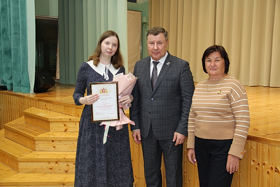 Сергей Мелехин вручил Почётную грамоту регионального парламента Юлии Колвалевой, имеющей 30-летний педагогический стаж. Благодарственными письмами были награждены Юлия Горькова, Нонна Коваленкова, Ольга Орлова, Светлана Новикова. Всем награждённым педагогам депутат подарил букеты цветов. В тёплой и камерной обстановке прошёл концерт творческих коллективов школы, посвящённый Дню матери.