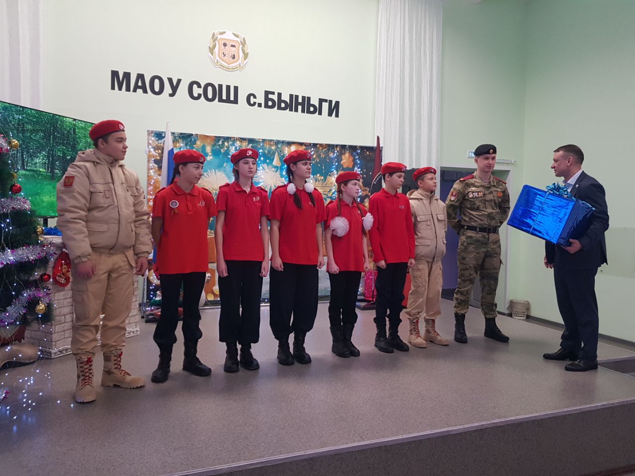 Ключевым событием визита стала торжественная церемония вручения комплектов полевой формы «Юнармии» воспитанникам военно-патриотического клуба «Медведи». Новое обмундирование было передано юнармейцам для поддержки их занятий и участия в патриотических мероприятиях.
