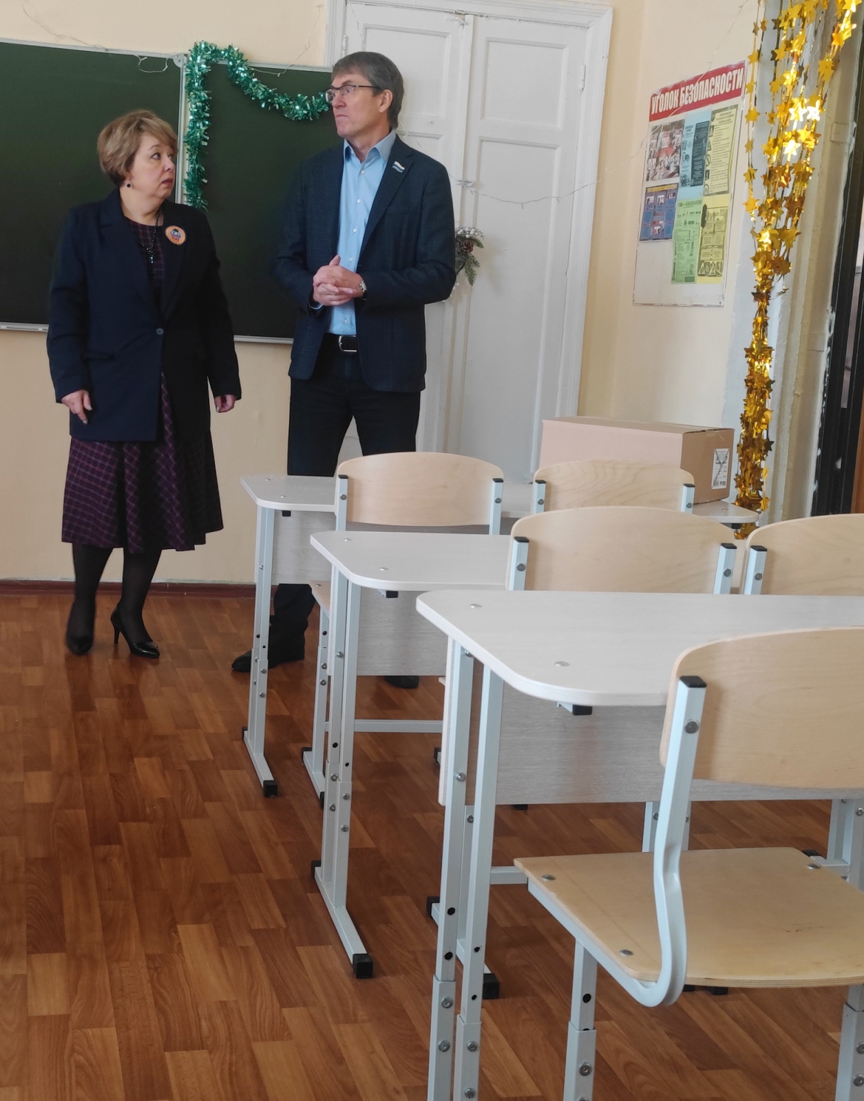 В этом году образовательное учреждение стало одним из получателей средств из депутатского миллиона. Это стало хорошим подспорьем – прибавив собственные возможности, школа закупила 4 новых комплекта парт. Вячеслав Малых встретился с учителями обновлённых кабинетов и отметил бережное отношение к классам.