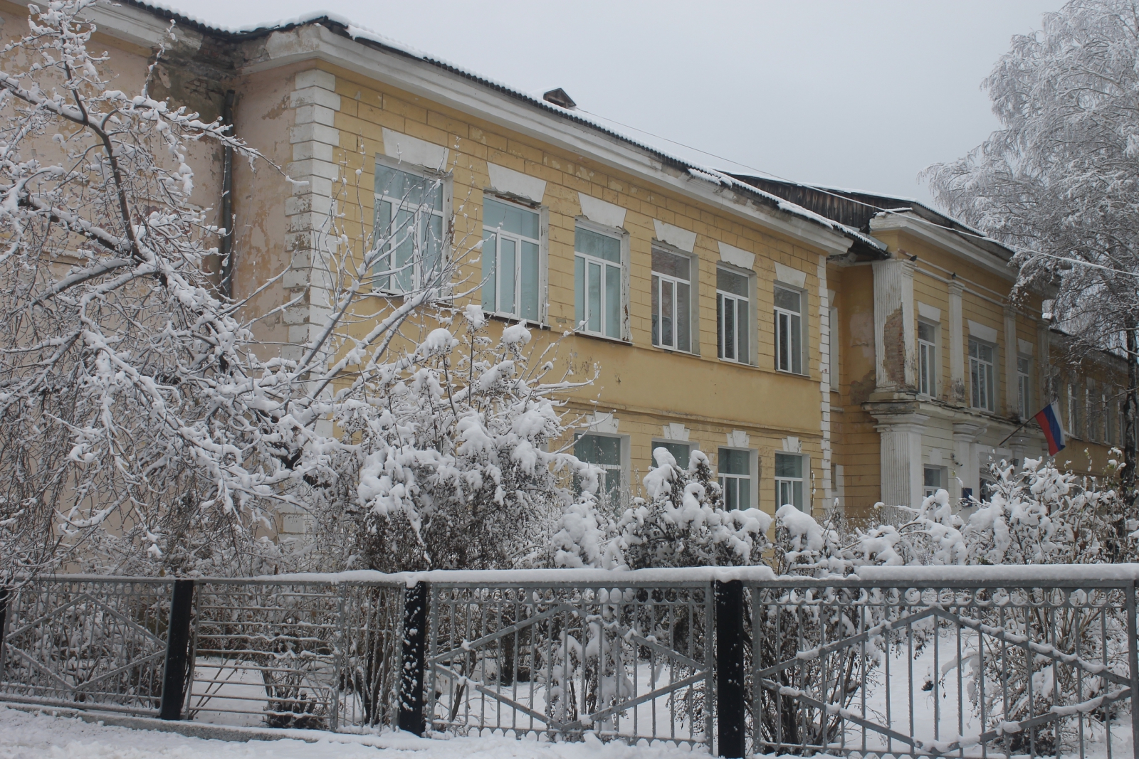 Здание введено в эксплуатацию в 1936-м году, сегодня оно является объектом культурного наследия: во время Великой Отечественной войны в этих стенах располагался госпиталь. Сейчас здесь ничего не напоминает об учебном процессе: голые стены, вскрытые полы, строительные тележки и люди в рабочей одежде. Капитальный ремонт коснётся всех аспектов здания – от фасада и кровли до инженерных сетей и отделочных работ.