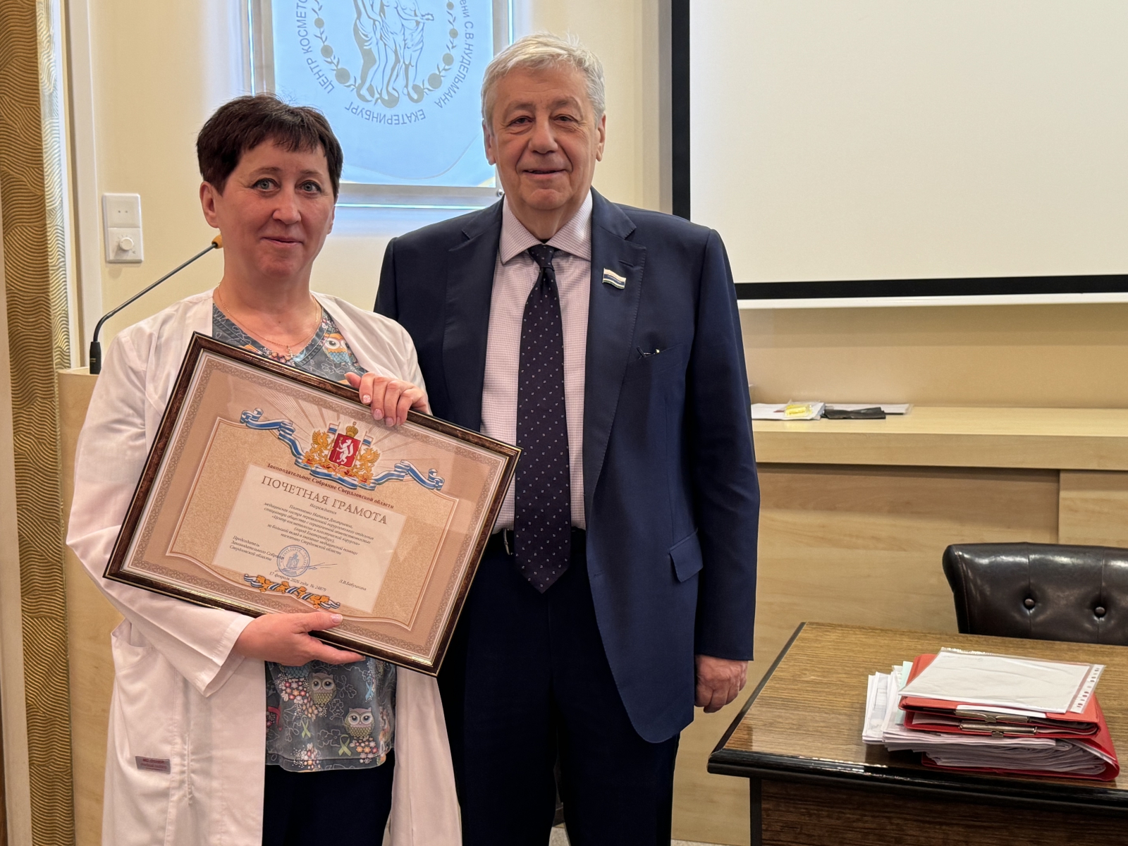 Первый заместитель председателя Законодательного Собрания Аркадий Чернецкий вручил почетные грамоты и благодарственные письма регионального парламента медицинским работникам «Центра хирургии имени С. Нудельмана».